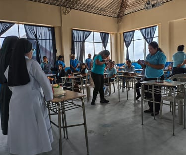 En un ambiente de fraternidad, todo el personal de la institución celebró el Día de la Anunciación. El encuentro, liderado por la Hna. Laura Mena (Representante Legal) y la Hna. Piedad García, fue una valiosa oportunidad para que el equipo docente y de servicios generales compartiera y recordara la importancia de este día tan especial para nuestra comunidad.