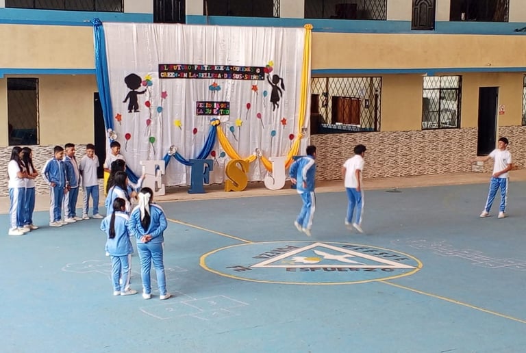 El 12 de agosto del presente año conmemoramos el Día de la Juventud con una jornada llena de entusiasmo y participación. Estudiantes y docentes compartieron gratos momentos a través de juegos tradicionales como el trompo, la cuerda y el baile de la silla, promoviendo la convivencia, la alegría y el rescate de nuestras costumbres.