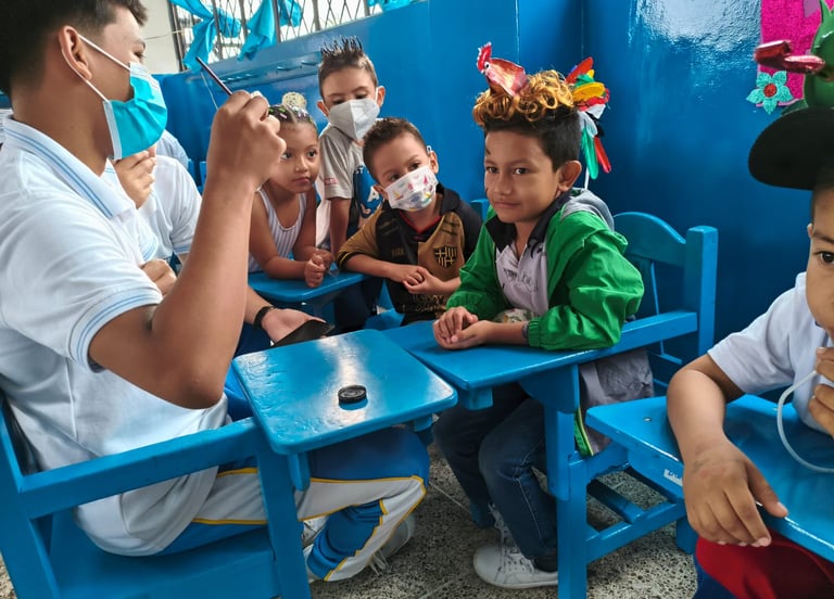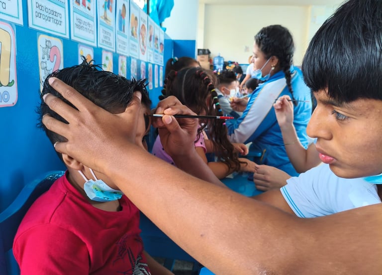 El día principal, los estudiantes mayores demostraron su gran espíritu de colaboración al pintar las caritas de los niños de la escuela, llenando el ambiente de color y sonrisas. Como cierre de la jornada, cada curso de Preparatoria, Básica Elemental y Media disfrutó de un emotivo compartir en sus aulas, al que se unieron con gran alegría los padres de familia para celebrar juntos este día tan especial.
